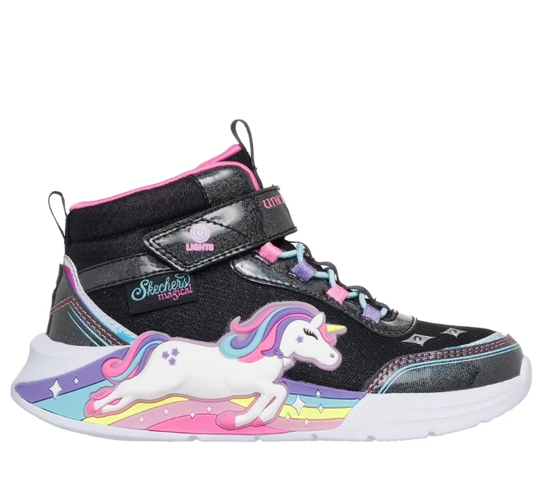 Mesés stílus és varázslatos kényelem egy cipőben! A Skechers Unicorn világítós kislány cipő igazi álom azoknak, akik szeretik a szivárványt, a csillogást és az unikornisokat.